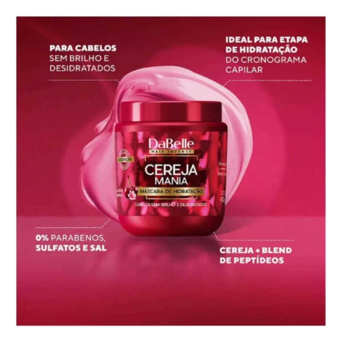Se você busca um tratamento potente para deixar seus cabelos profundamente hidratados, a Máscara de Hidratação Cereja Mania é a escolha perfeita! Com uma textura cremosa e concentrada, ela oferece uma hidratação intensa e cria uma blindagem que ajuda a prolongar os efeitos do tratamento, deixando seus fios mais macios, leves e com um brilho maravilhoso.