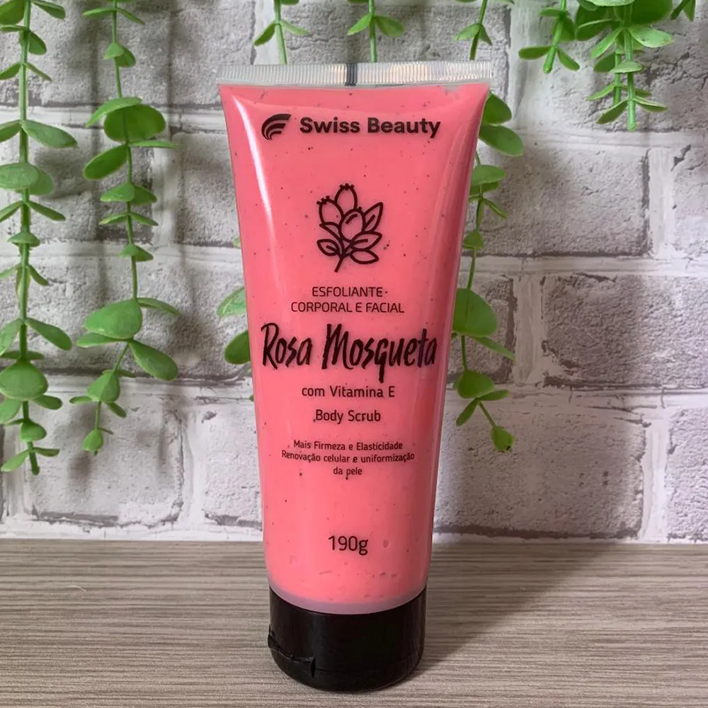 O Esfoliante Swiss Beauty Rosa Mosqueta, essa fragrância leva um composto Como : Manteiga de karité ,Mel , D-Pantenol e Muitos Outros, que auxilia na Limpeza e Hidratação da Sua Pele.